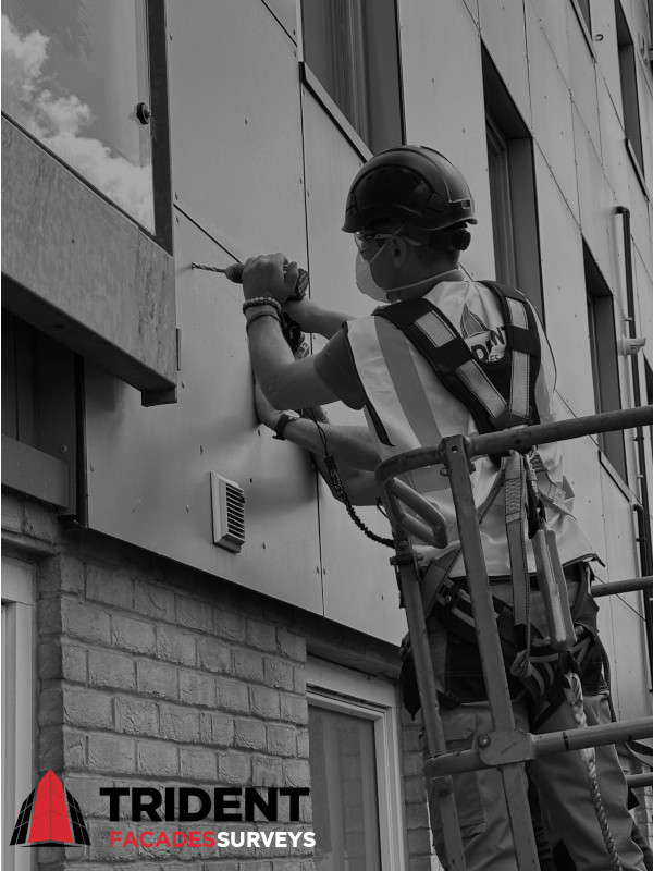 Trident Facades Surveys manages every stage of the EWS1 process — from access and permits to intrusive surveys and accredited fire engineer sign-off. Our PAS 9980–compliant reports are delivered quickly, clearly, and with full insurance protection, giving you the assurance that every detail has been handled to the highest professional standard. With our experienced team overseeing the process from start to finish, you stay informed, compliant, and in control.